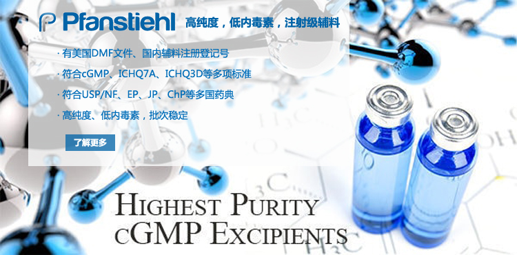“熱烈祝賀Pfanstiehl的注射級甘氨酸Glycine(G-140)喜獲CDE登記號F20250000403, 這是Pfanstiehl產品獲得的第18個CDE登記號!”甘氨酸在醫藥輔料制劑中應用廣泛,, 可作為緩沖劑,增溶劑,穩定劑等,具有諸多優勢。Pfanstiehl秉承一貫高品質理念,為滿足全球生物制藥行業對于高品質甘氨酸的需求,隆重推出的注射級甘氨酸Glycine (G-140), 具有超高純度,超低內毒素,超低金屬殘留的特點,單獨檢測29種金屬離子,并且新增DNA,RNA,DNA酶,RNA酶和脂肪酶,亞硝酸鹽等多項質量指標的檢測,符合多國藥典規定(USP, EP, BP, JPE, ChP),可用于生物治療性藥物和疫苗的生產。產品信息:· 產品名稱:Glycine, High Purity, Low Endotoxin, Low Metals, USP, EP, BP, JPE, ChP (G-140)· 中文名稱:甘氨酸· 分子式:C2H5NO2· 分子量:75.07 g / mol· CAS號:56-40-6· 產品貨號:G-140產品特點: · 超高純度,超低內毒素,超低微生物含量,超低金屬雜質殘留· 質量指標新增DNA,RNA,DNA酶,RNA酶,脂肪酶和亞硝酸鹽檢測· 符合多國藥典:USP, EP, BP, JPE, ChP· 符合ICH Q3D標準· 符合GMP標準· 已獲DMF和CDE登記號 產品應用:· 緩沖劑· 穩定劑· 增溶劑如果您對Pfanstiehl注射級別Glycine G-140感興趣,歡迎聯系Pfanstiehl 中國區代理商北京西美杰科技有限公司獲得如下詳細的產品概況說明文件和測試樣品。Pfanstiehl Inc.最新產品系列如下,歡迎聯系北京西美杰科技有限公司獲取100g裝免費樣品。北京西美杰科技有限公司為Pfanstiehl中國代理,為客戶提供完善的技術支持與售后服務。歡迎撥打西美杰客服電話400-050-4006或者登陸網站www_xmjsci_com.luentang.com了解更多信息。 更多>